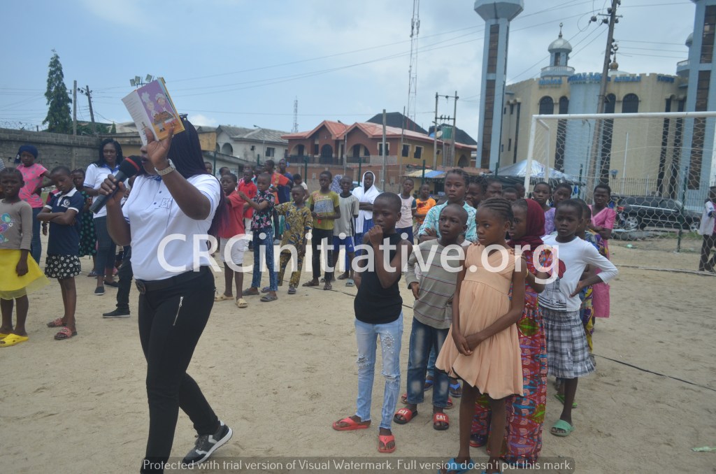 As scheduled, on June 12, 2019, the CRCi team, ready as ever, stormed the Ajiran Open-air Football Field located opposite the central mosque at the extreme of Agungi road, Lekki, Lagos state. The community is located a distance across Gbara Community where an earlier edition of Open Book was organized nine (9) months ago. Fortunately, it was a very sunny day and the CRCi team was welcomed with the presence of over three hundred and fifty (350) children, some of their parents and guardians, as well as representatives from the school and community leadership team.